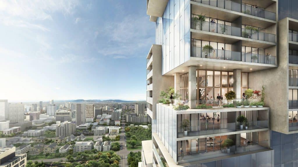 ▸ Diện tích 3,3 ha: 1-2 tầng hầm, khối đế 4 tầng; 6 tháp căn hộ cao 12 – 32 tầng