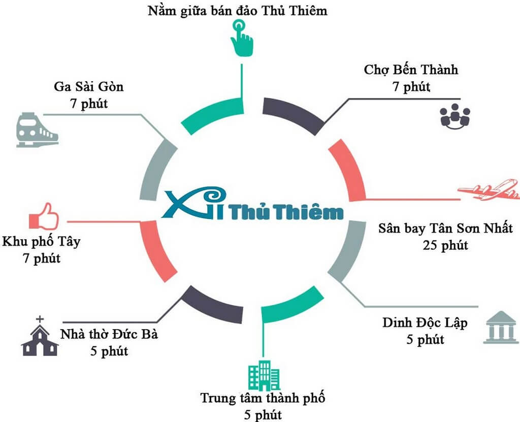 Bên dưới là khoảng cách từ Thủ Thiêm Zeit River đến các tiện ích lân cận: